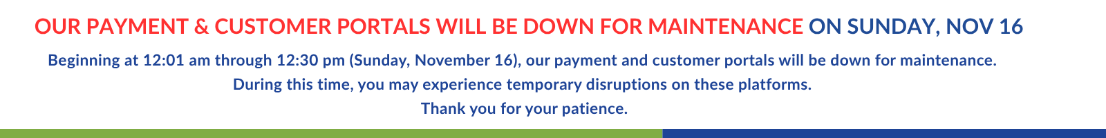 If you are unable to pay the entire billed amount and wish to enter into a payment agreement, please call Customer Service at (866) 279-1233 to inquire about your eligibility. The payment plan will consist of payment of the current month’s billing plus a portion of the past due amount, due and payable on the current month’s due date.